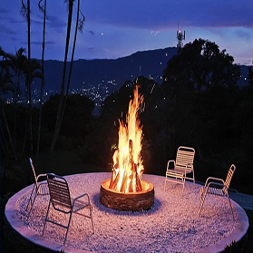 - Jardines, zona de fuego sagrado, espacios de silencio, piscina y charcos